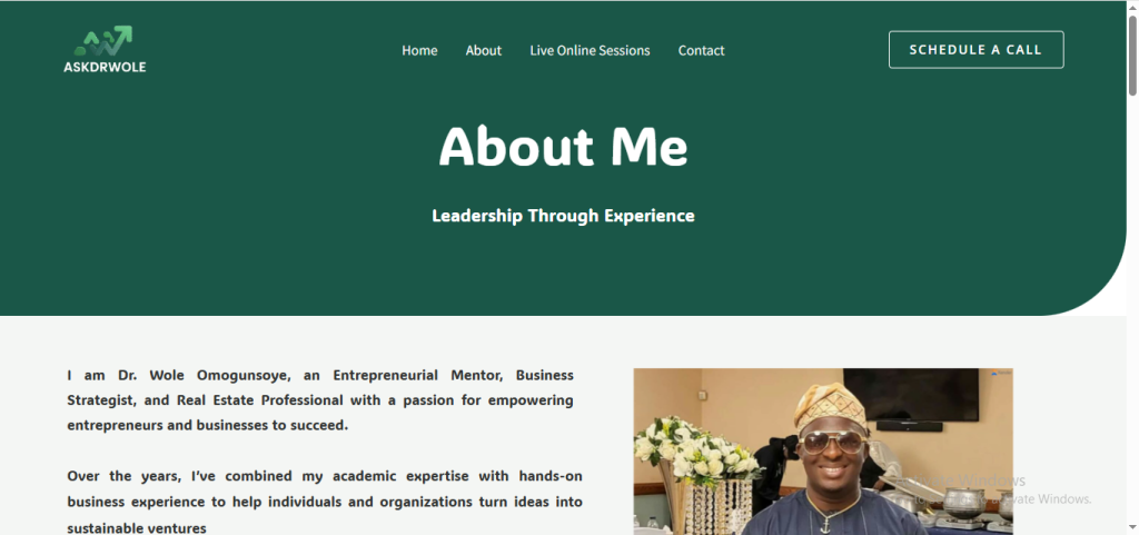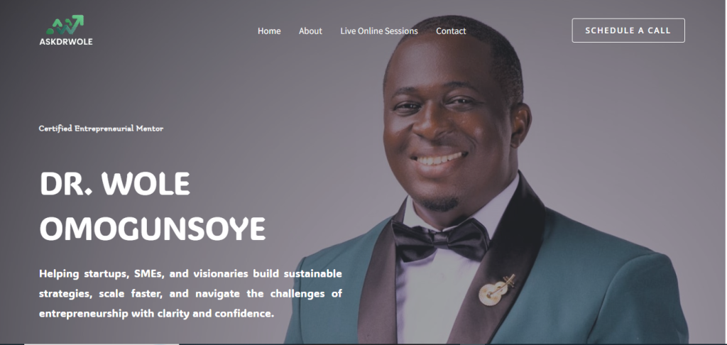 www.askdrwole.com is a platform dedicated to entrepreneurial mentorship, guidance, and personal branding. The goal was to build a website that reflects authority, professionalism, and approachability, while providing an intuitive experience for users seeking mentorship resources.